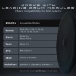 • DUAL-ZONE TRS + EDGE-CHOKE COMPATIBILITY (STANDARD WIRING): Designed for drum modules that support dual-zone cymbal triggering (bow/edge) plus edge choke over a single 1/4” TRS cable using common e-drum cymbal wiring. Works with many popular electronic drum kits; for other brands or older modules, confirm TRS dual-zone cymbal support and choke behavior in your module manual before purchase.
