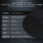 - 3-ZONE TRS COMPATIBILITY, TWO-CABLE SETUP: Designed for drum modules that support triple-zone ride triggering (bow/edge plus bell) using two 1/4” TRS cables with common e-drum ride wiring. Fits standard electronic cymbal stands; for best stability and consistent triggering, use proper felts/sleeve and a rotation stopper on 9 mm posts to keep position during harder playing.